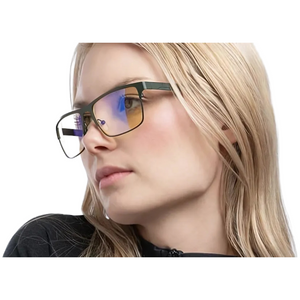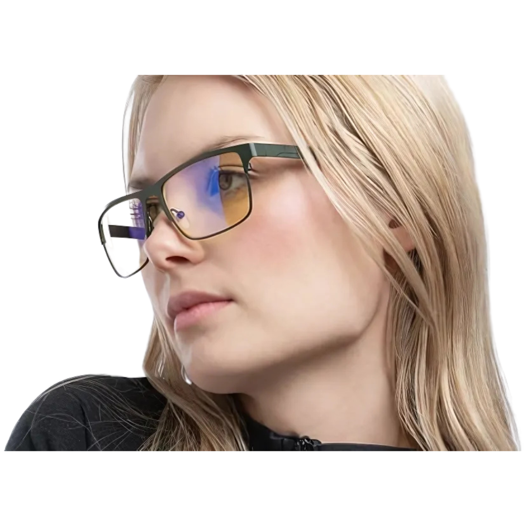 Amber-tinted GUNNAR lens blocks 65% blue light and 100% UV for optimal eye protection
